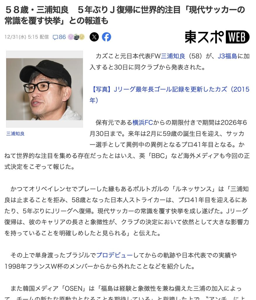 三浦カズってすごいよね、